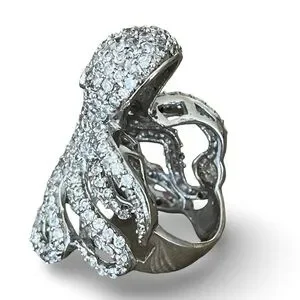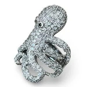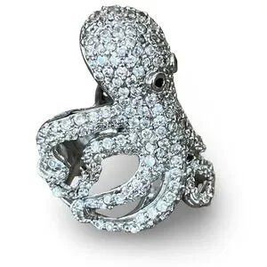 Large Sparkling Pave Silver Tone Statement Octopus Ring Size 7