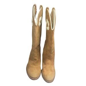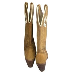 Vintage ACME Cowboy Boots Suede Flower Tan Rockabilly Daisy 60s 70s W 7 USA