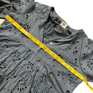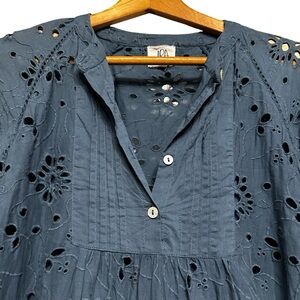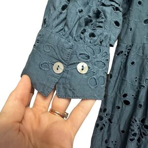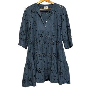 Anthropologie dRA Yara Mini Tiered Babydoll Dress Medium Eyelet 3/4 Sleeve Blue