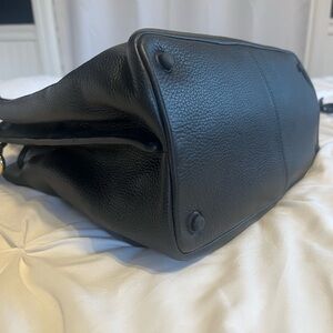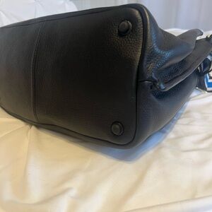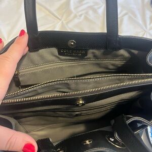 Cole Haan Black Pebble Leather Satchel with Blue Accent strap