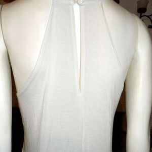 Charlotte Russe Tank Top Cream Colored with Black Fringe Size M Button Neck