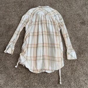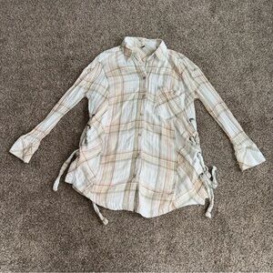 Free People Plaid Button-Up Shirt with Side Ties Womens Oversized Small EUC