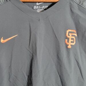 Nike performance jacket. Gray with orange logo and accents. Long sleeves. Dri-FIT technology.