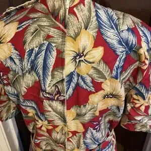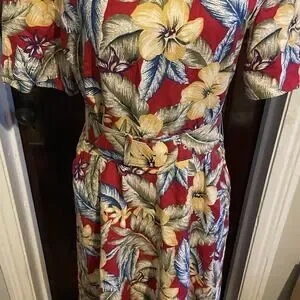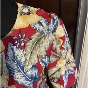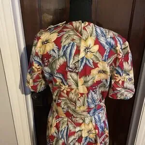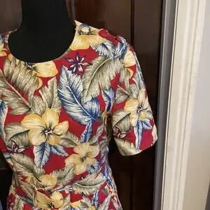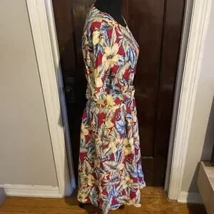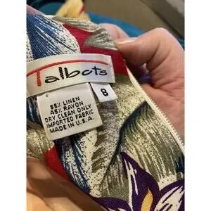 Vintage 90s Talbots Womens 8 Belted Linen Blend Short Sleeve Hawaiian Dress USA