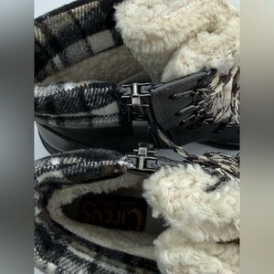 Circus by Sam Edelman Giselle Faux Fur Plaid Hiker Ankle Side Zip Boots Size 9
