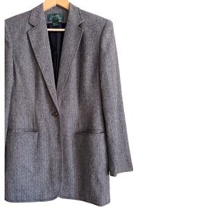 LAUREN RALPH LAUREN Vintage Silk Wool Blend Preppy Formal Structured Blazer