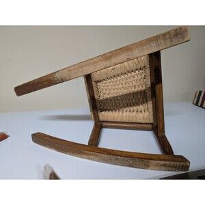 Vintage MCM 24" Wooden Child’s Rocking Chair w/ Arms & Handwoven Rattan Seat EUC