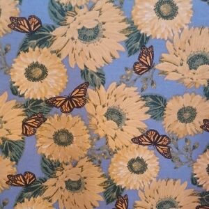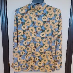 Brighten your style with this Blair long sleeve top. Features a sunflower pattern in blue and yellow with monarch butterflies. A mock neck to just pull over and go, just right under a jacket or cardigan.Perfect for a cheerful look. Excellent condition size M