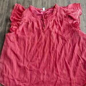 LC Lauren Conrad Pink Ruffled Mandarin Collar Blouse