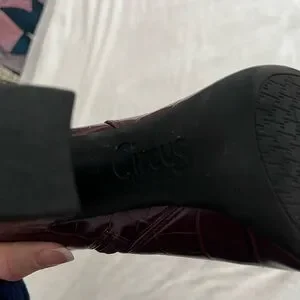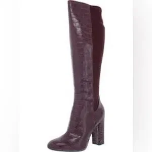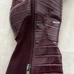 Chic over the knee boots in deep burgundy. Perfect for elevating any look.