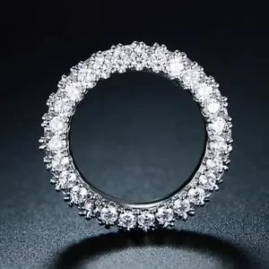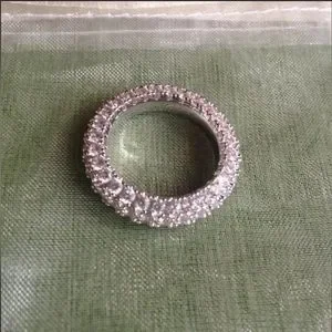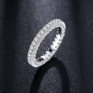 New Woman’s 18K Gold Plated Sterling Silver 3 Row White Sapphire Eternity Ring