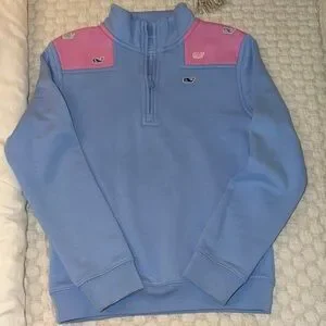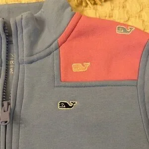 Vineyard Vines Blue and Pink Kids Quarter-Zip Sweatshirt