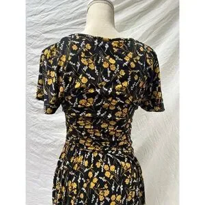 Anthropologie Maeve Womens Dress Size Small Black Floral Summer Breeze V-Neck Ruched