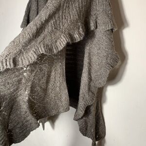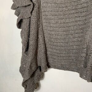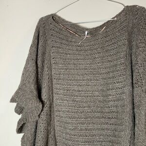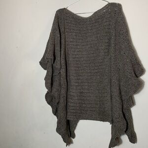 Free People Brown Crochet Scallop Cape Wrap Wool Blend Sweater Size Small