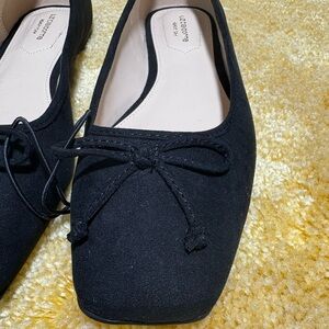 Elegant black soft faux suede women's ballet flats with a chic design. Perfect for any occasion.