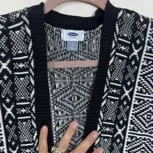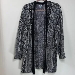 (H1)Old Navy, black and white,Aztec style Cardigan sweater,LG Heavyweight cotton