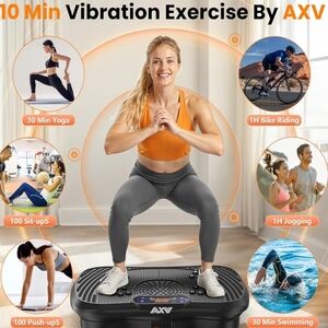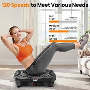 Black AXV vibration platform with remote and resistance bands. Ideal for home workouts.