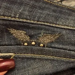 Dark blue denim with silver button detail. Iconic Robin's Jean style. New, no tags