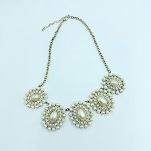 Circle Statement Faux Pearl Rhinestone Beaded Gold Toned Necklace