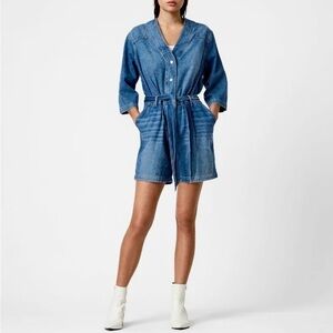 AllSaints Abbey Denim Jumpsuit Short Belted Onesie Romper Blue Sz 4