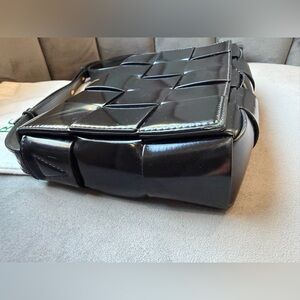 BOTTEGA CASSETTE Spazzolato Intrecciato Crossbody Bag Black patent woven
