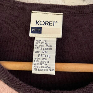 Women’s. KORET. Brown and pink 100% wool sweater. Embellished. Embroidered. Floral. Patchwork. Unique. One minor flaw- see photo. Size Petite Medium.
