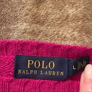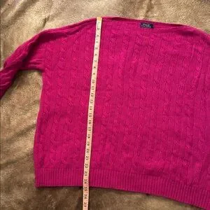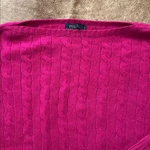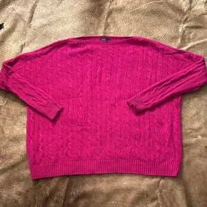 Fuchsia Polo Ralph Lauren Cable knit sweater. Has flattering boat neckline.