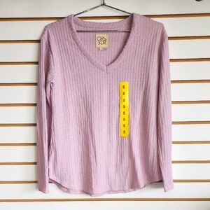 long sleeve waffle knit light weight sweater top shirt, light purple