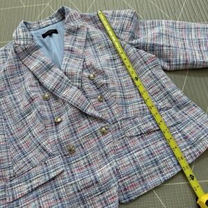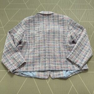 Talbots Multi Pink Blue White Plaid Tweed Blazer Jacket Size 14W Gold Buttons