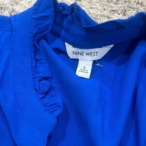 Chic royal blue jumpsuit by Nine West. Features a sleek design with a tie waist. Perfect for versatile styling. Brand new never worn