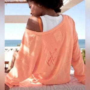 Aerie Oversized Orange Sweatshirt Voop Neck Feeling The Heat Summer Daze medium