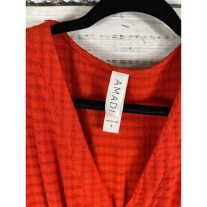 Amadi Dress Women's Large Red Textured V Neck Midi Long Sleeve Boho Made USA