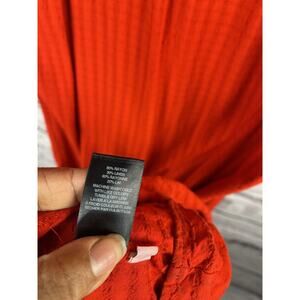 Amadi Dress Womens Large Red Textured V Neck Midi Long Sleeve Boho
