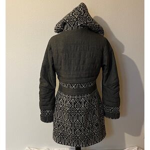 Keep warm and stylish with this gray patterned coat. Perfect for chilly days. Cute button detail. Women’s size M. Good preowned condition