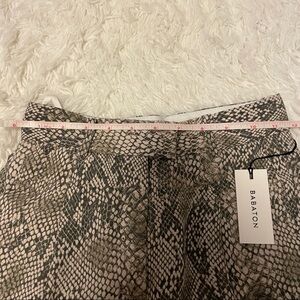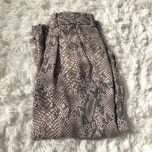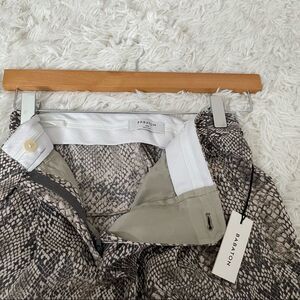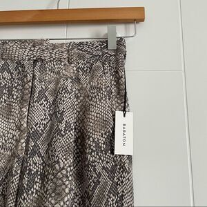 Works evenings and weekends, too. This is a wide-leg, high-waist trouser with deep pleats and back darts. This version of the Sadiki is made with a drapey matte satin and comes in a python print that was designed in-house.