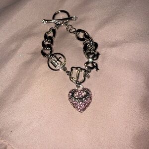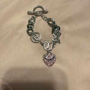 Juicy Couture Silver and Pink Heart Charm Bracelet