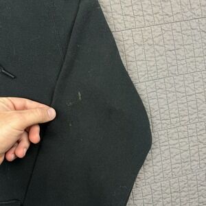 There are bleach mark stains on the backside of one sleeve, as well as on the tip of one drawstring. Shown in pics