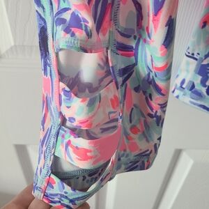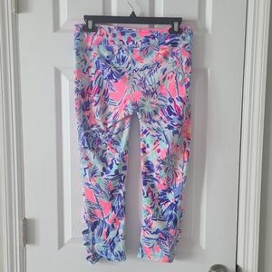 Lilly Pulitzer Luxletic Weekender Crop Legging in Cabana Coctail Size M. There is a small spot on the pack of the Leggings close to the top, which can be seen in the listing photos