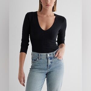 Express Black Body Contour Compression V-Neck Long Sleeve Bodysuit size Small