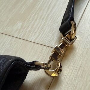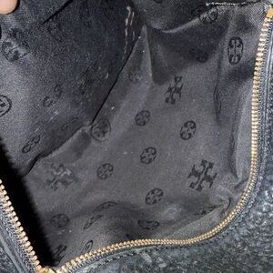 Elegant Tory Burch black crossbody bag with gold hardware, perfect for daily use. The adjustable strap and iconic logo provide both style and functionality.