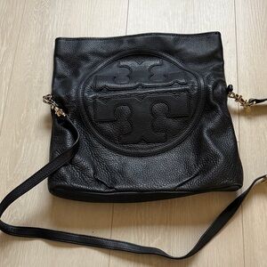 Tory Burch Flap Black Crossbody Bag with Gold Hardware