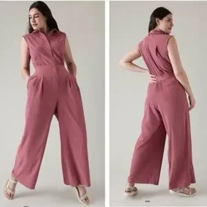 Athleta Brooklyn Heights Wide Leg Jumpsuit in Berry Rose Pink (8P)