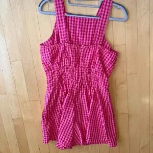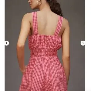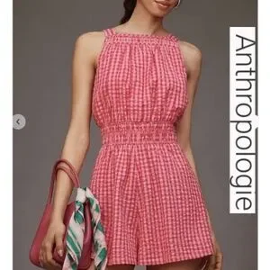Anthropologie Somerset pink checked romper, XS, GL1303