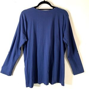 2/$35 J.Jill Blue Henley cotton knit roll tab-sleeve top