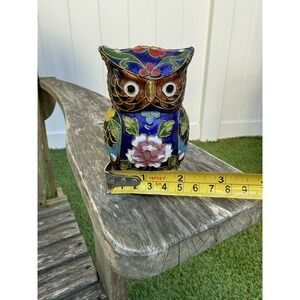 Vtg Cloisonne' Enamel Owl Figurine