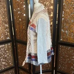 Stylish cardigan with fringe details. Features multicolor stripes. Perfect for layering. One small hole on sleeve see photo