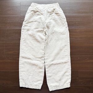 • These are linen wide leg pants, with a mid rise. In good, pre-owned condition! Zip fly. Designed to have a relaxed fit throughout.