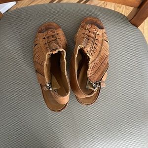 PAUL GREEN Cuoio Brown Cayanne Leather Peep Toe Bootie Boot/ sandal
