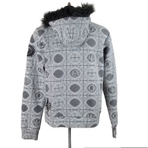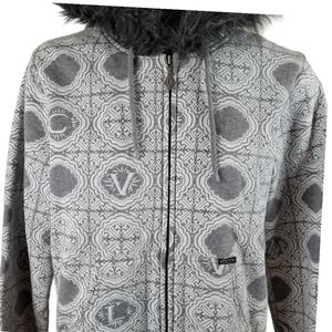 VOLCOM Hoodie Grey Zip Up Faux Fur Size Large