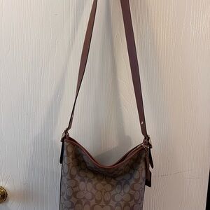 Coach Brown and Tan Signature Shoulder Bag
